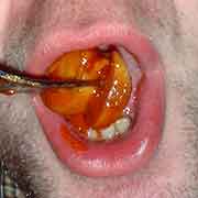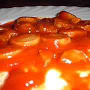 Was einen nach der Aufbereitungsprozedur erwartet ist aber doch nicht so schön. Was soll ich sagen die Wurstschnipselchen schmecken eben, wie schon erwähnt, wie ein alter Tofulümmel, und das soll nicht sein. Die Kaugeräusche sind auch nicht das, was ich als schön bezeichnen würde, was an einer irgendwie durch-und-durch-Zerkochtheit liegen könnte. Die Tomatensoße ist so süß, dass es auf den Stimmbändern kribbelt und so richtig nach Curry schmeckt sie auch nicht, sondern eher nach der guten alten Maggidosenraviolisauce mit dem zwölf Jahre alten Currypulver, welches man nach genauso vielen Bieren in der dunkelsten Ecke des Küchenschrankes, noch hinter einer ominösen Dosencurrywurst gefunden hat. Leider kann auch diese Tunke nichts verdecken.